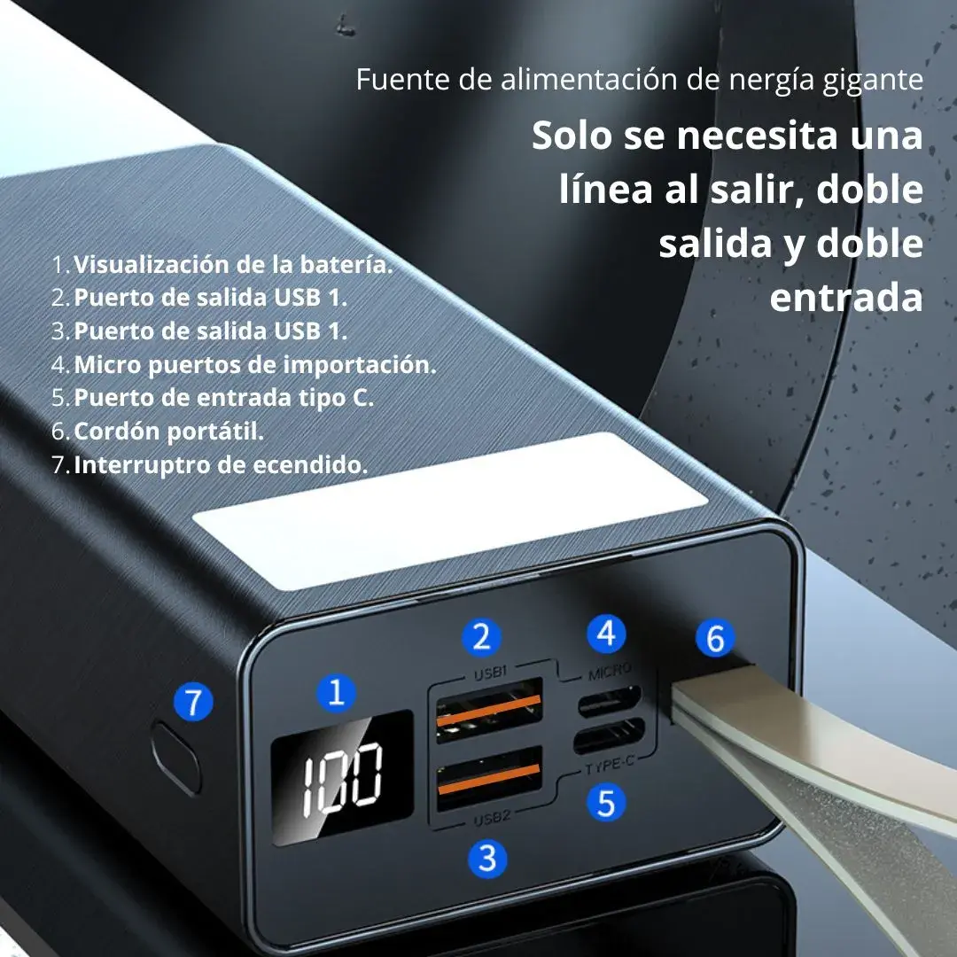 - 🔋 Capacidad real de 50000mAh: Energía prolongada para varios dispositivos.