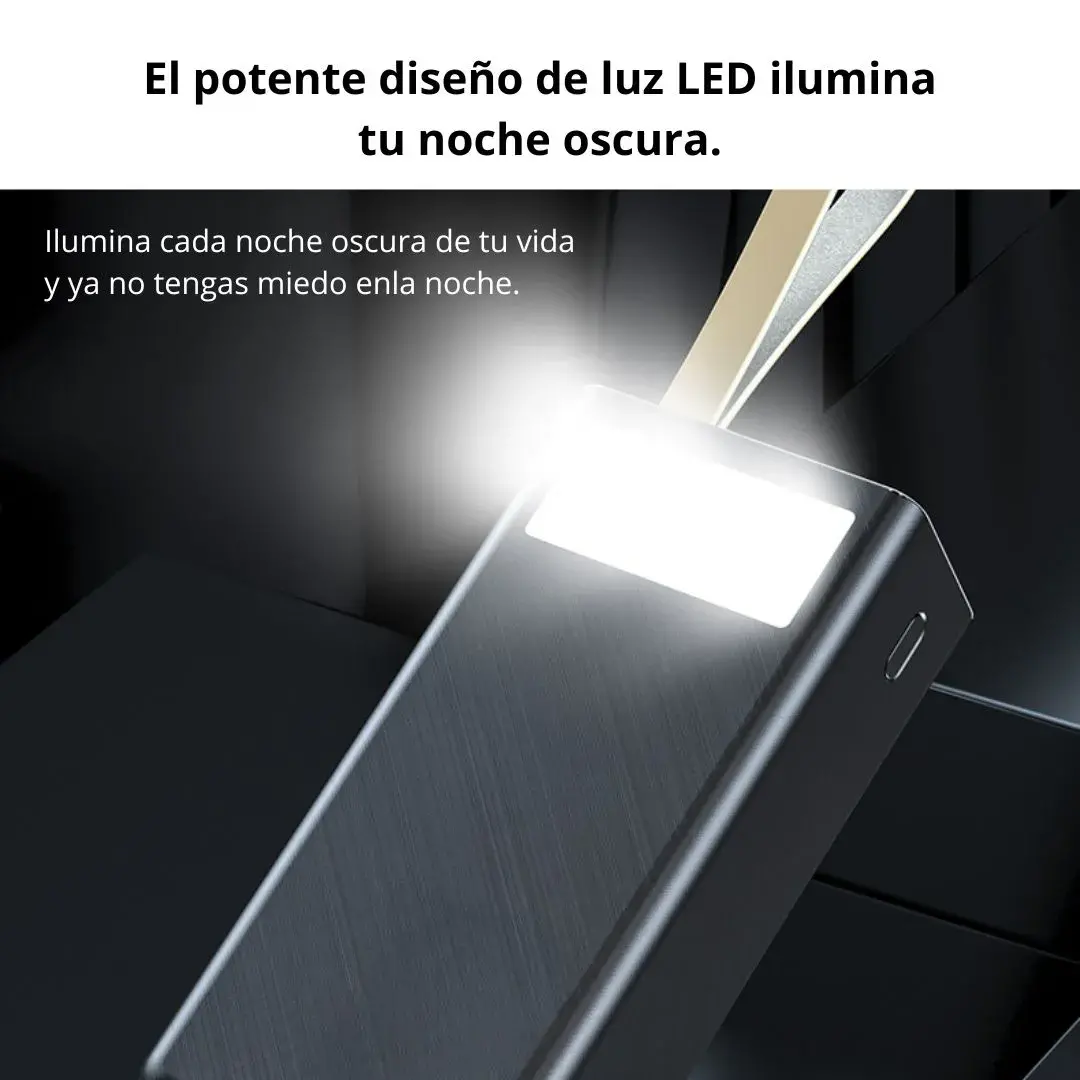 Fabricado con materiales resistentes y duraderos, este power bank combina versatilidad, seguridad y potencia en un solo dispositivo compacto.